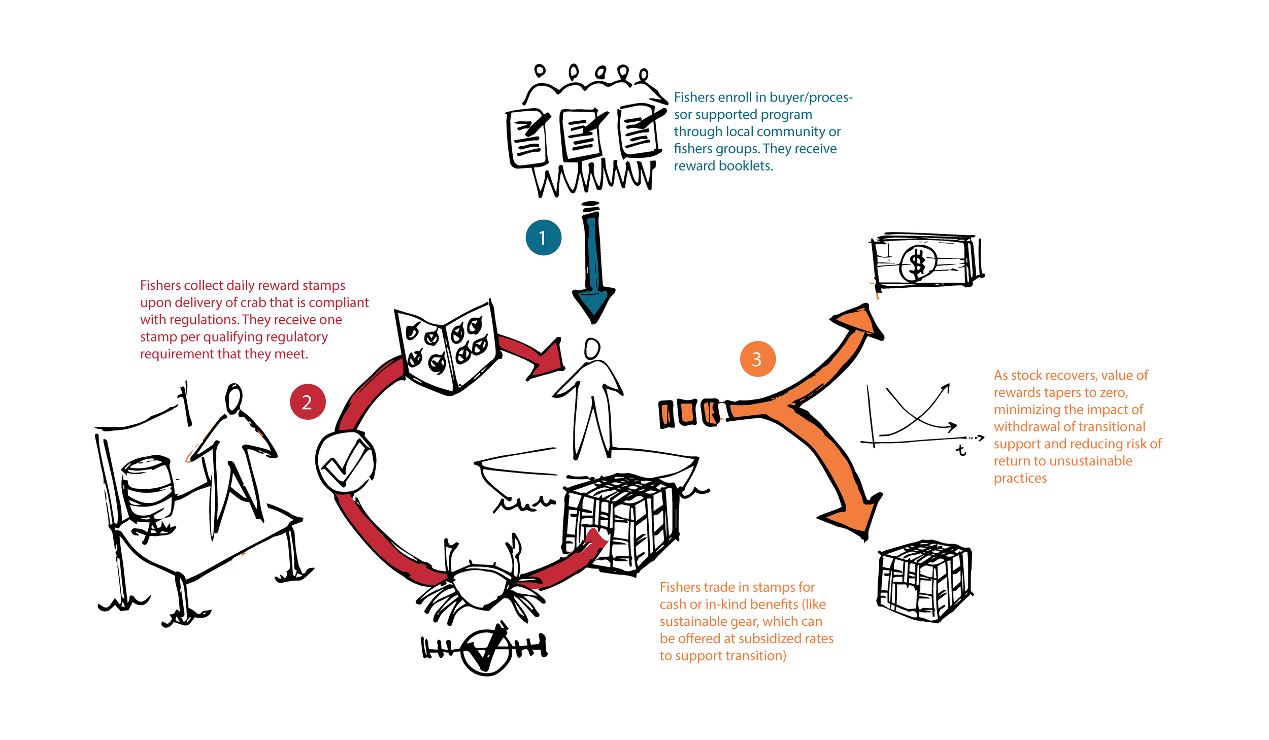 Offering a menu of benefits to fishers to as they transition to sustainable fishing practices will accelerate fisher buy-in and increase individual responsibility for changes on the water