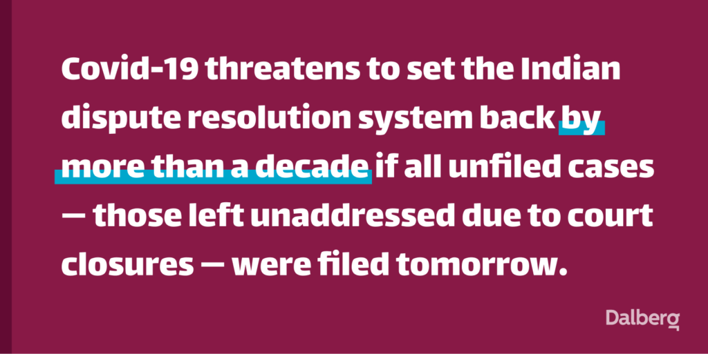 Before the pandemic, dispute resolution in India was already extremely time-consuming and costly. A typical case could take as long as 4-5 years to resolve. As Covid-19-induced delays and closures further expand arrears, litigants’ waits threaten to stretch to a decade or longer.