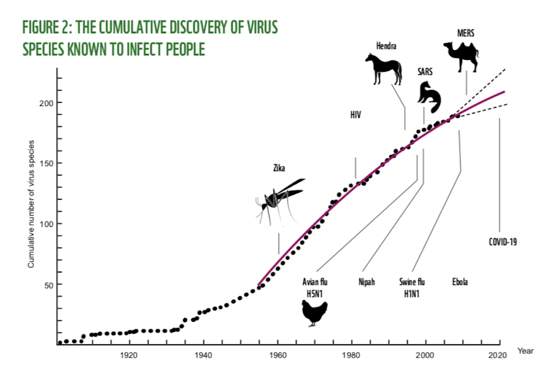 At the core of the report is the alarming rate in numbers and frequency at which zoonotic diseases are emerging, and the preventative actions that must be taken by governments, companies, civil society organizations and the public in order to protect our health, economies and ecosystems. These new diseases pose a grave threat, as sources of deadly recent pandemics including HIV/AIDS, Severe Acute Respiratory Syndrome (SARS), Swine Flu, Middle East Respiratory Syndrome (MERS), Ebola and most recently COVID-19.