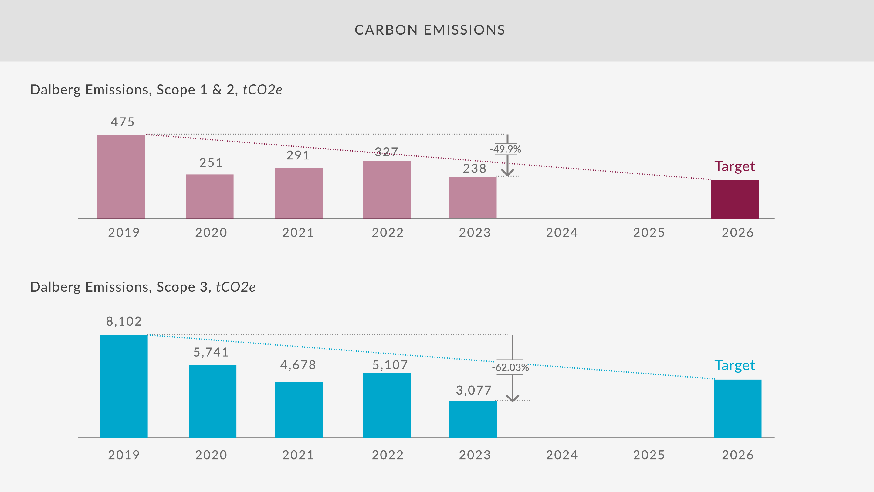 As we continue on our carbon reduction trajectory, our core objectives include maintaining the 55% decrease in GHG emissions, striving for a 30% reduction in per-person plastic footprint, and continuing to advise our clients to mitigate and adapt to climate change. We will continue to update our footprint methodology and measurements, support our teams to reduce their emissions, and select the highest quality credits to ensure we reach net-zero.