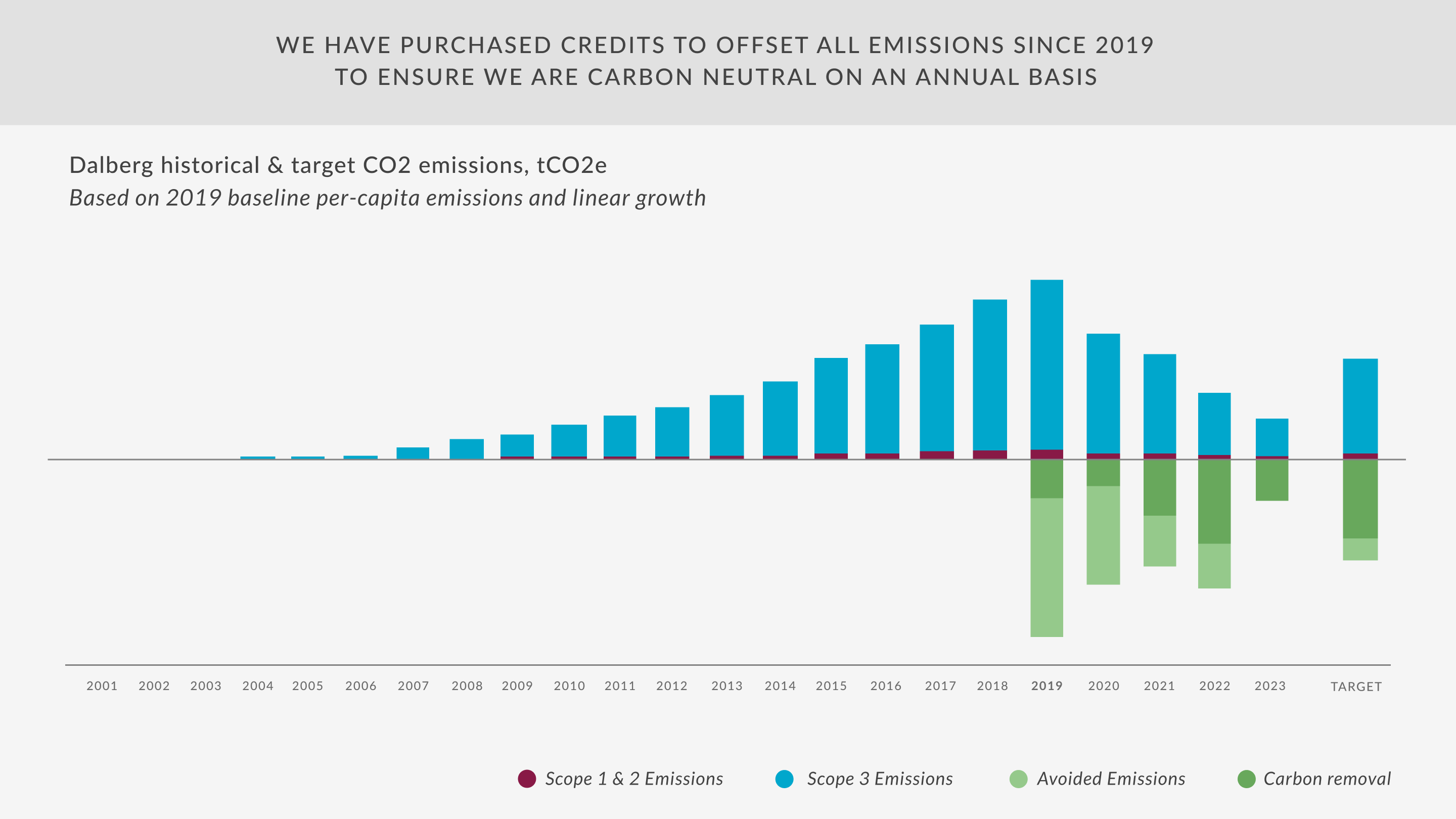 In 2020, Dalberg committed to being a carbon- and plastic-neutral company, aiming to achieve net zero emissions by 2025. Our three-part climate commitment binds us to reduce emissions wherever possible, allocate resources to offset unavoidable emissions—such as those from travel, commuting, and plastic disposal—and apply a climate lens to all our projects. This comprehensive approach includes accounting for and mitigating both our carbon emissions and plastic waste.