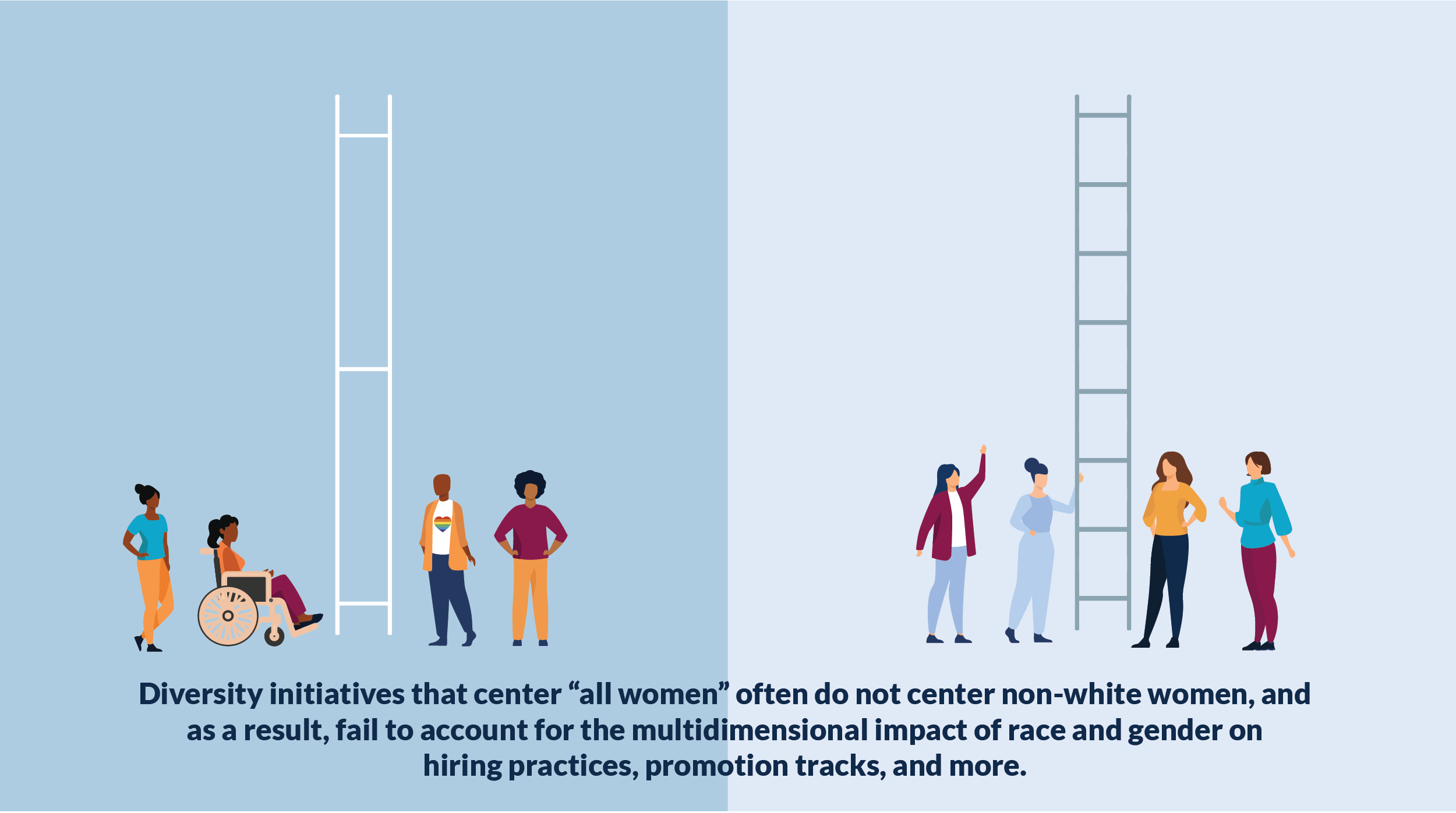 Integrating intersectionality into organizations’ practices and attitudes is difficult but essential to the path to realizing equality for all. An intersectional lens must be applied to both internal D&I efforts and external-facing work.